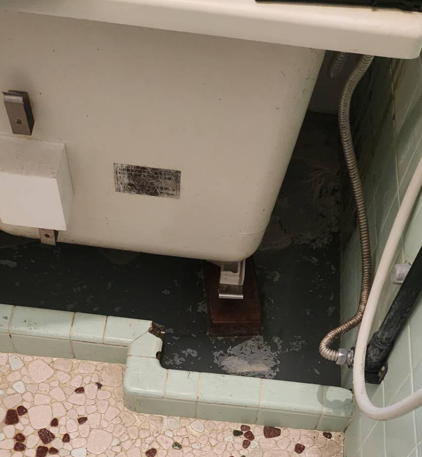 写真のように、浴槽の下はコンクリートが崩れ、