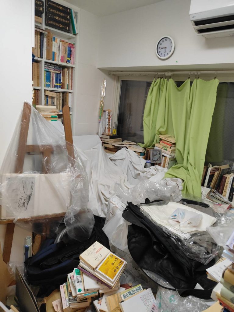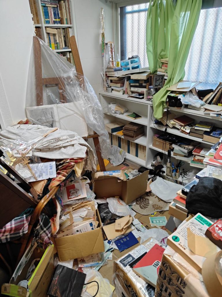 本棚にぎっしり詰まった学術書、歴史書、小説、美術書……そして山積みになった段ボール。部屋いっぱいに広がる“知の宝庫”は、長い歳月をかけて集められた旦那様の大切な財産そのものでした。