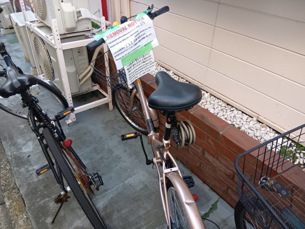 今回のシェアハウスでは、複数台の自転車が共用スペースや建物脇に長期間置かれていました